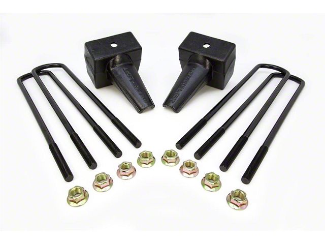 Increase Rear Ride Height. Are you looking to mildly increase your Super Duty’s rear ride height? Your F-350 comes with a 3-4-Inch tall rear block from the factory with an integrated bump stop tang; these ReadyLIFT 5-Inch Rear Lift Blocks feature a 5-Inch height with an integrated bump stop tang, raising the rear of your Super Duty by 1 to 2-Inches for a mild increase in height. These lift blocks are ideal for transforming a leveling kit into a complete lift kit or for leveling your ride height after installing a camper shell, transfer tank, cab-over camper, or other bed-mounted equipment.