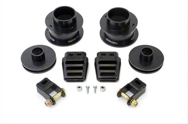 E-Coated Steel Construction. This kit is constructed using heavy-duty black e-coated steel and includes coil spacers that use your existing factory front coil spring. It works with vehicles with up to 35-inch tires.