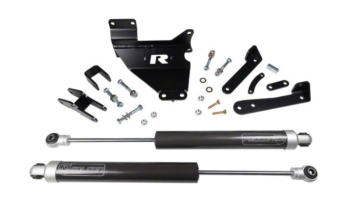 Built for Durability. Constructed to withstand the rigors of extensive use, the ReadyLIFT Dual Steering Stabilizer Kit offers long-term reliability. Its durable components are engineered for easy bolt-on installation, requiring no modifications for a perfect fit. The inclusion of Falcon Steering Stabilizers, known for their robust construction, ensures that your vehicle benefits from improved steering control without sacrificing quality or durability.