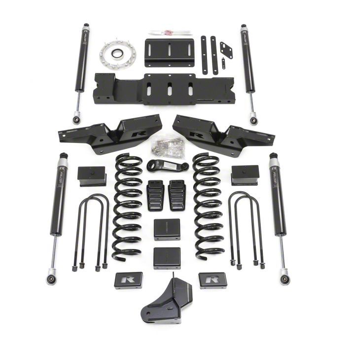 Premium Lift Kit. The ReadyLIFT 6-Inch Coil Spring Suspension Lift Kit with Falcon 1.1 Monotube Shocks is engineered to enhance the on- and off-road capability of 4WD diesel Ram 3500 HD trucks by raising the front by six inches and the rear by five inches. It improves ground clearance, enables fitting of larger tires up to 37x13.50, and enhances overall suspension performance for a smoother, more stable ride while maintaining driveline angles through its advanced driveline indexing system.