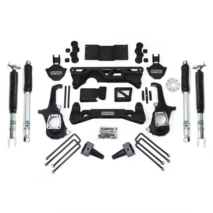 Lifted Stance. Add a commanding, lifted off-road stance to your 2011-2019 2500 HD GMC Sierra by upgrading to an Adjustable Suspension Lift Kit that includes Bilstein 5100 Shocks. With 5 to 6-inches of lift, this kit can accommodate tires up to 35-inches in size allowing you to conquer any trail. This ReadyLIFT Adjustable Suspension Lift Kit features iron steering knuckles, forged torsion keys, rear lift blocks, as well as heavy duty crossmembers and skid plate. What’s more, the included Bilstein 5100 Series Shocks will provide a highly comfortable ride, even across the roughest terrain.