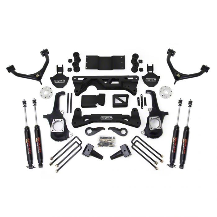 Lifted Stance. Add a commanding, lifted off-road stance to your 2011-2019 2500 HD GMC Sierra by upgrading to an Adjustable Suspension Lift Kit that includes SST3000 Shocks. With 7 to 8-inches of lift, this kit can accommodate tires up to 37-inches in size allowing you to conquer any trail. This ReadyLIFT Adjustable Suspension Lift Kit features tubular upper control arms, iron steering knuckles, forged torsion keys, rear lift blocks, as well as heavy duty crossmembers and skid plate. What’s more, the included SST3000 Series Shocks will provide a highly comfortable ride, even across the roughest terrain.