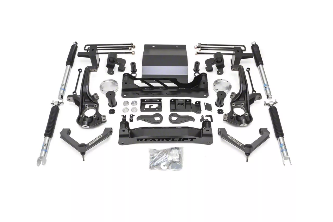 Off-Road Optimized. Get more ground clearance and prepare your Sierra for larger wheels and more aggressive terrain with this ReadyLIFT 8-Inch Suspension Lift Kit with Bilstein Shocks. Sporting an increased lift of 8-inches your can cruise over obstacles much easier and take on taller tires for even greater traction.