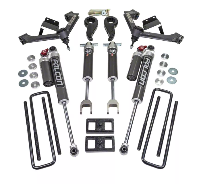 Premium-Quality. Crafted with top-grade components, including Falcon 2.1 Shocks, forged torsion keys, and fabricated steel upper control arms, this kit guarantees durability and reliability.