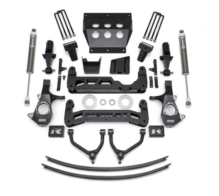 Enhances Off-Road Performance. Gearing your truck up with this ReadyLIFT 9-Inch Suspension Lift Kit with Falcon 1.1 Monotube Shocks will improve its off-road performance. This suspension lift kit adds an extra 9-inch lift so that your truck will be able to confidently drive over taller obstacles. What’s more, installing this lift lets your vehicle sport more powerful off-road tires of up to 37 inches.