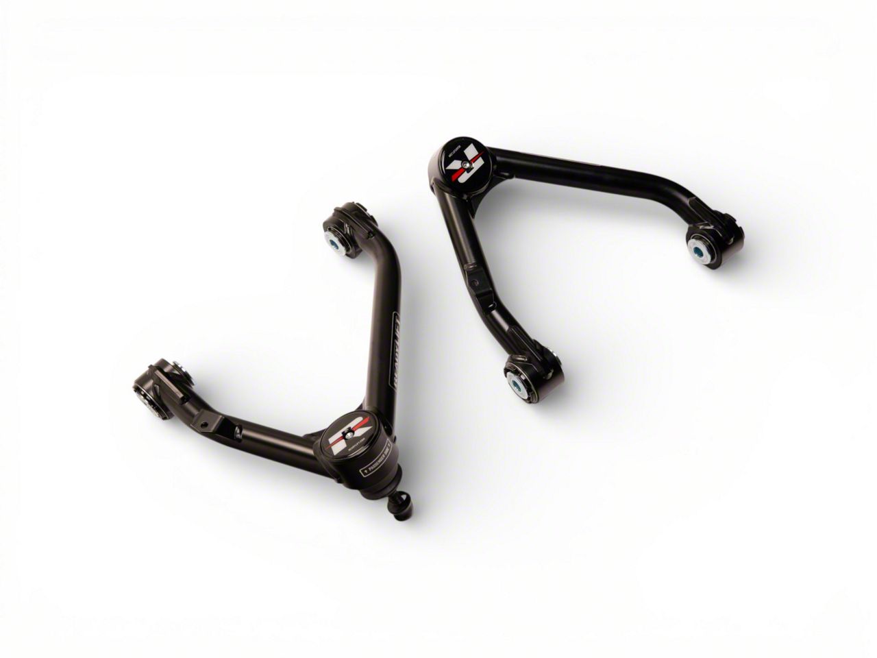 Construction and Features. These upper control arms feature a durable glossy black finish and a race-style uni-ball design that corrects the geometry and alignment of lifted vehicles. Proprietary pivot bushings and Terrain Control Technology reduce road noise and enhance durability, while the sealed dust cap protects against debris, ensuring long-lasting performance.