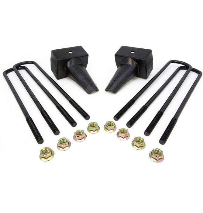 Heavy-Duty Construction. This 4-Inch Rear Lift Kit consists of lift blocks made of heavy-duty cast iron to ensure maximum strength and reliability. This premium construction can handle long-lasting rugged use. These components together with the included U-bolts exhibit high structural integrity to withstand high-stress driving conditions. Moreover, the OEM configuration offers correct engagement, positioning, and alignment.