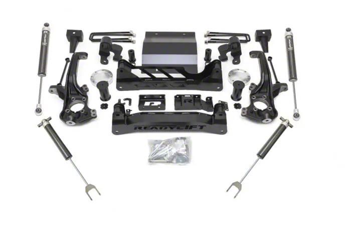 Rugged Suspension Fortification. Tackle rugged terrain without worry by upgrading your suspension system with the ReadyLIFT 6-Inch Suspension Lift Kit with Falcon 1.1 Monotube Shocks. Delivering an impressive lift, this lift kit allows you to navigate over obstacles and uneven surfaces effortlessly, while the advanced shocks are engineered to deliver exceptional damping performance, providing a smooth and controlled ride, even on the most challenging terrains.