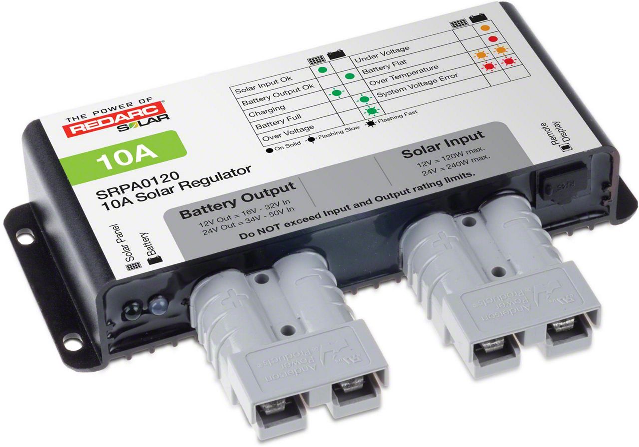 Application. This Redarc 10 AMP Solar Regulator fits universally and requires minimal adjustments.