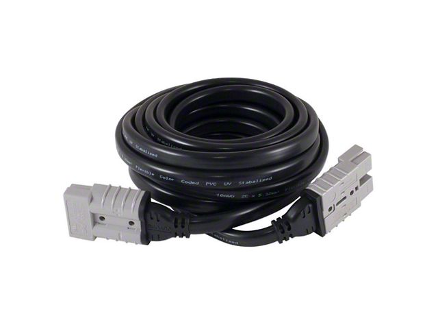 Construction and Appearance. The cable features industry-standard Anderson SB50 connectors and is constructed with UV-stabilized PVC insulation/sheath. It has a voltage rating of 50-Volt DC Max, a current rating of 40A, and uses an AWG 10 wire gauge, measuring 16 feet in length.