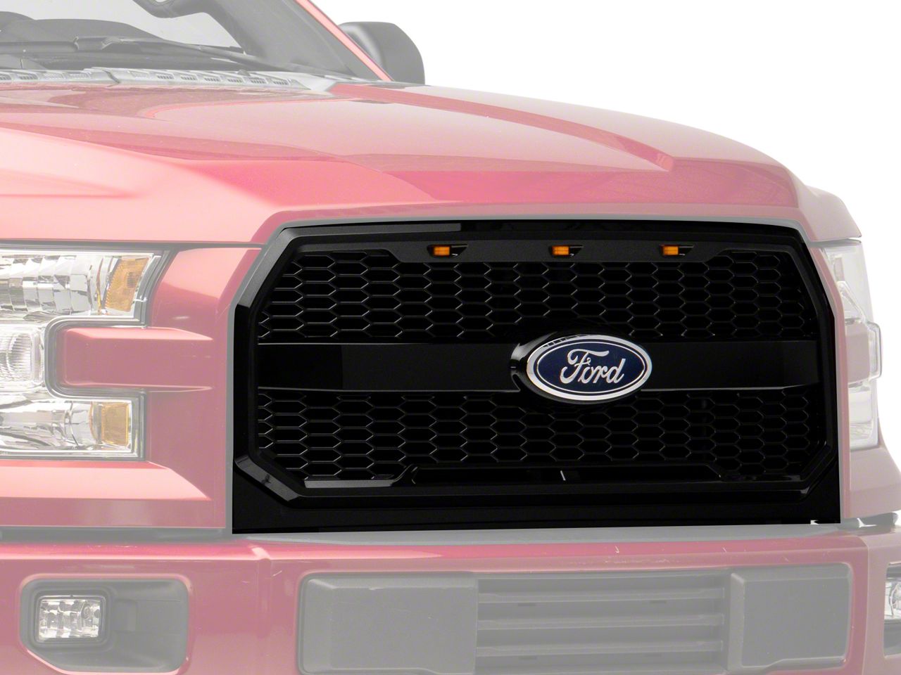 LED Accent Lighting. This Baja Style Grille also includes three high mount amber LED accent lights. These LED accent lights come with a wiring harness that simply splices into your F-150's existing factory headlight harness. The LEDs will then automatically activate in conjunction with your running lights. The eye-catching LEDs not only look great, but will also make your F-150 more visible to other drivers at night and in poor weather conditions.