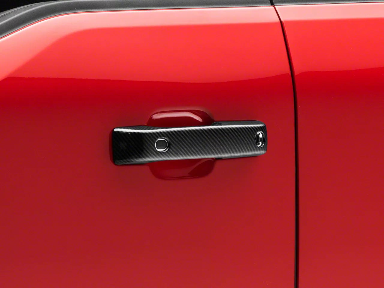 Application. These RedRock Door Handle Covers; Black Carbon Fiber are designed to fit 2021-2026 Ford F-150 SuperCrew models equipped with Smart Key Button. Sold as a set of 4.