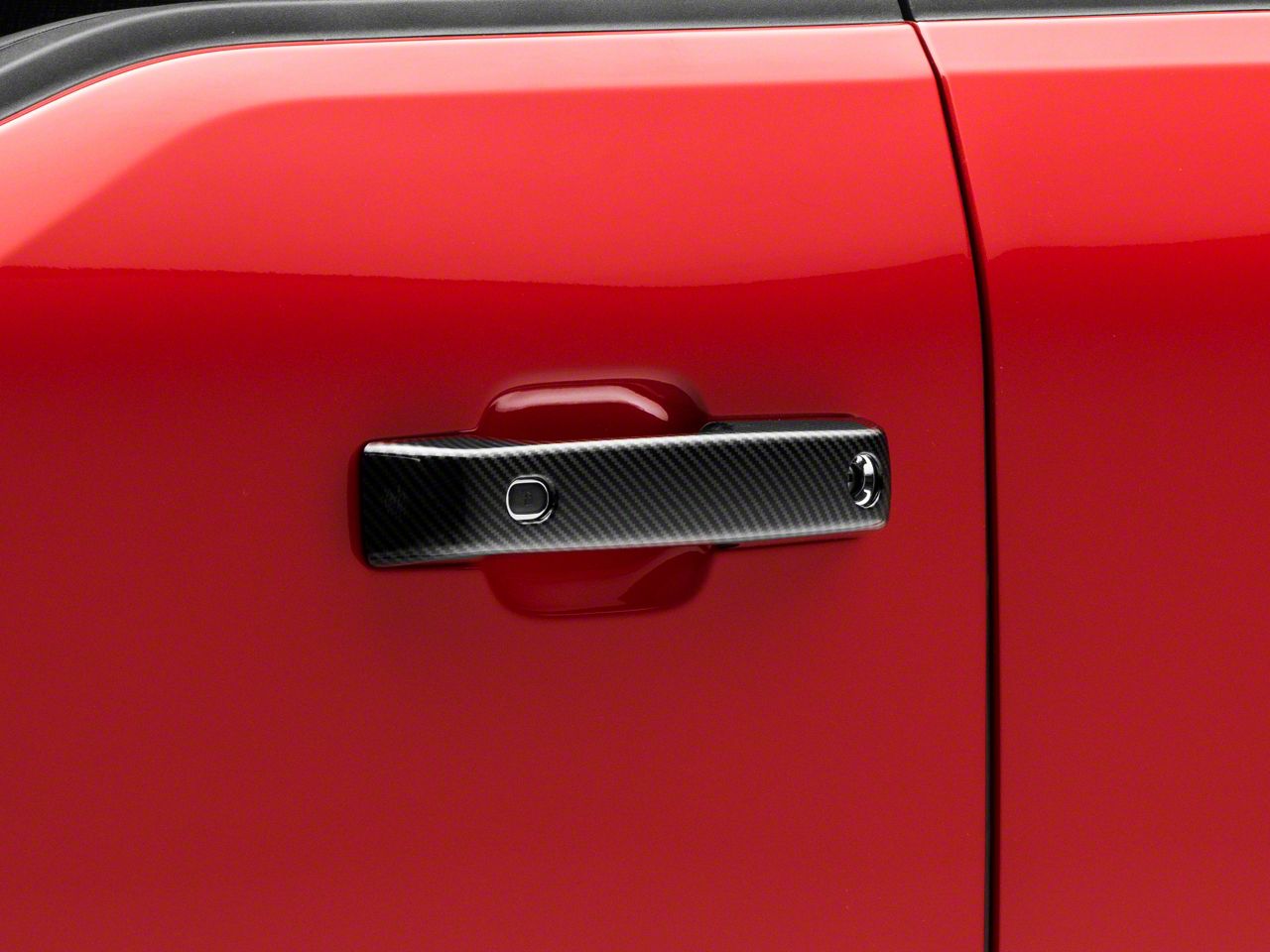 Application. These RedRock Door Handle Covers; Black Carbon Fiber are designed to fit 2021-2025 Ford F-150 models equipped with Smart Key Button. Sold as a set of 2.