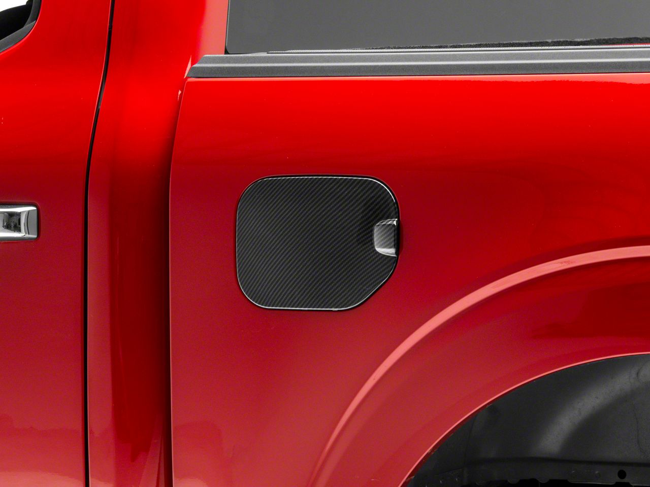 Subtle Modest Look. Add subtle style to your exterior with this RedRock Fuel Door Cover; Carbon Fiber for your F-150. Sporting a different black texture, it makes your fuel port more noticeable and easier to find. Made from lightweight ABS polymer, it is an easy accessory to add to your vehicle.