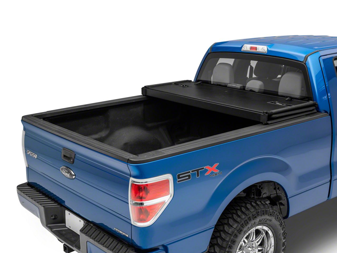 Style and Protection. Add a much sleeker, cleaner appearance to your Styleside Ford F-150 all while discretely storing cargo and tools in the bed by installing a RedRock 4x4 Hard Tri-Fold Tonneau Cover. This RedRock 4x4 Hard Tri-Fold Tonneau Cover features a convenient tri-fold design that can fold up to easily access your bed, or when hauling larger items. As an added bonus, you may even see up to a 10% increase in fuel mileage because of its low profile aerodynamic design.