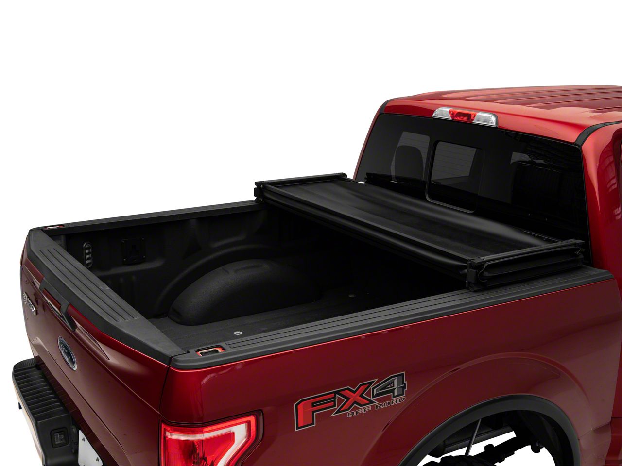 Protect Your Cargo in Style. Discretely hide cargo in the bed of your Ford F-150 while enhancing its exterior styling with a RedRock 4x4 Soft Tri-Fold Tonneau Cover. This RedRock 4x4 Bed Cover features a convenient Tri-Fold design that can be folded up to access your bed, or when hauling larger items. As an added bonus, you may even see up to a 10% increase in fuel mileage because of its aerodynamic design.
