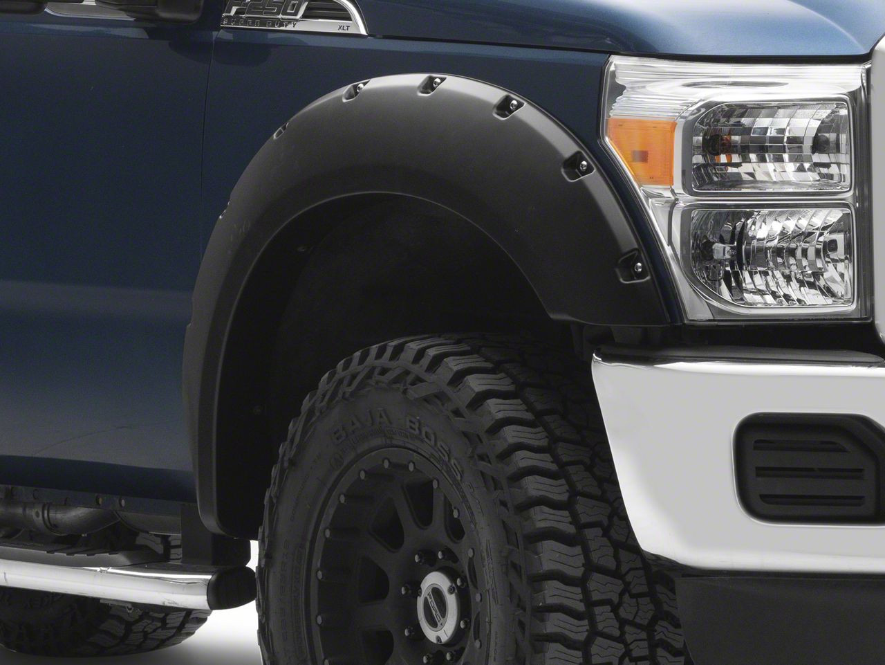 Application. This set of four RedRock 4x4 Pocket Style Fender Flares are designed to fit the 2011-2016 Ford F-250 Super Duty models.