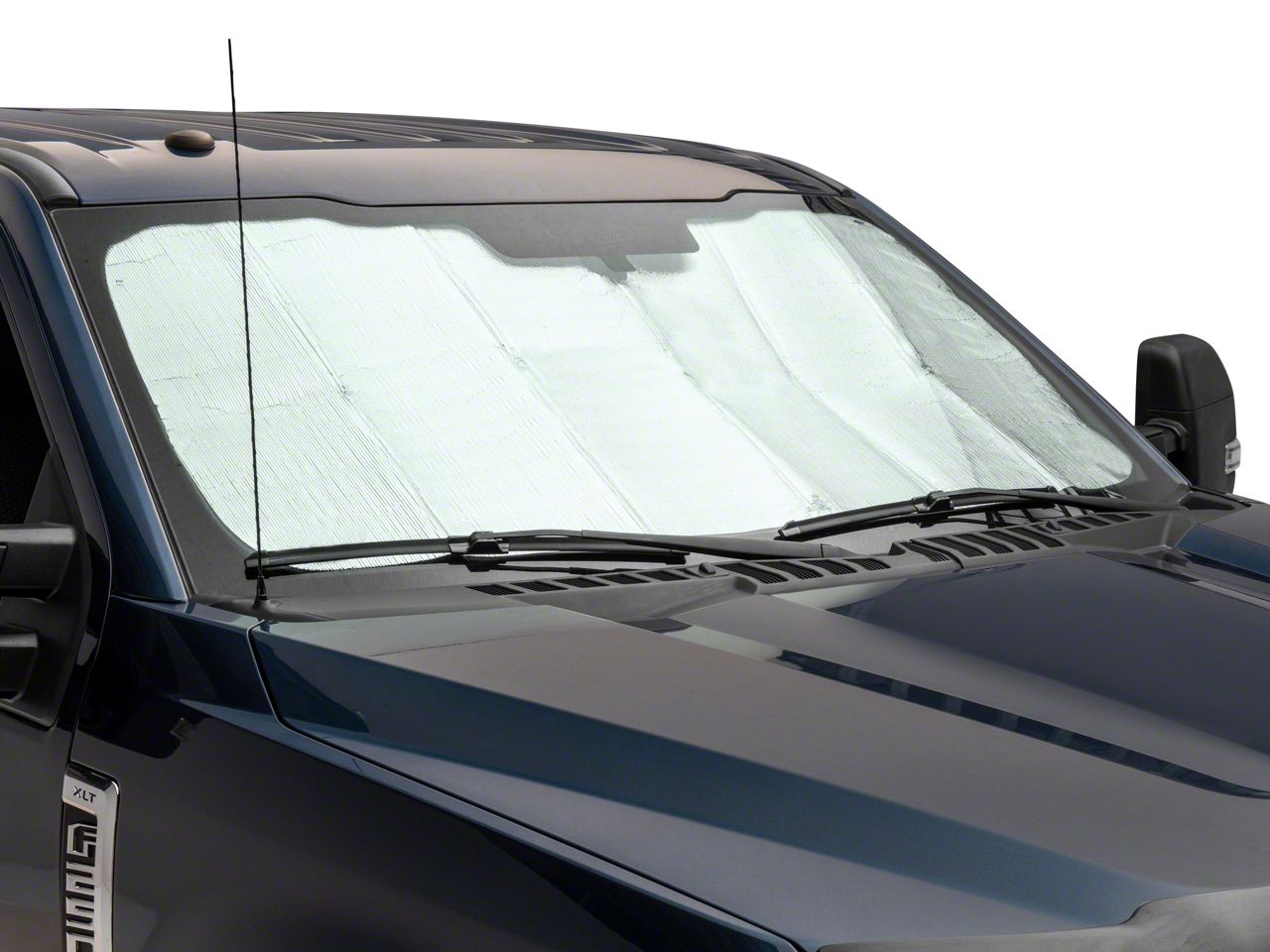 Quality Construction. The outside-facing layer features a silver material that helps reflect damaging UV rays to protect and cool your Super Duty's interior. The inside-facing layer has a soft felt-like fabric to prevent scratches on your dashboard. Both fabrics are laminated to a foam core which acts as an insulator to further protect your interior.