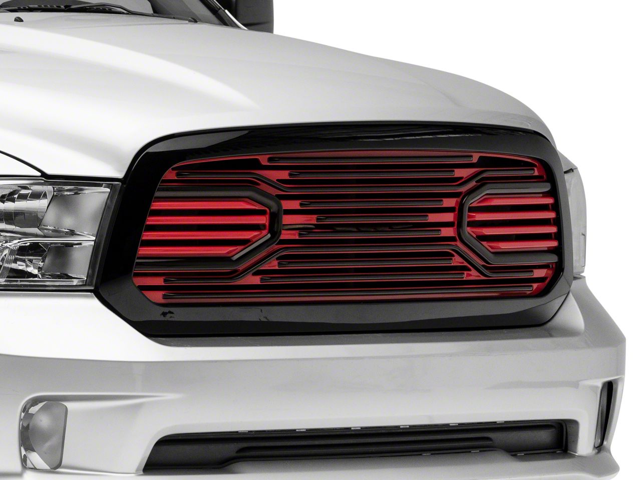 Application. This RedRock 4x4 Big Horn Style Upper Replacement Grille; Black and Red is designed to fit 2013-2018 RAM 1500 models, excluding Rebel. This is a replacement grille not an overlay.