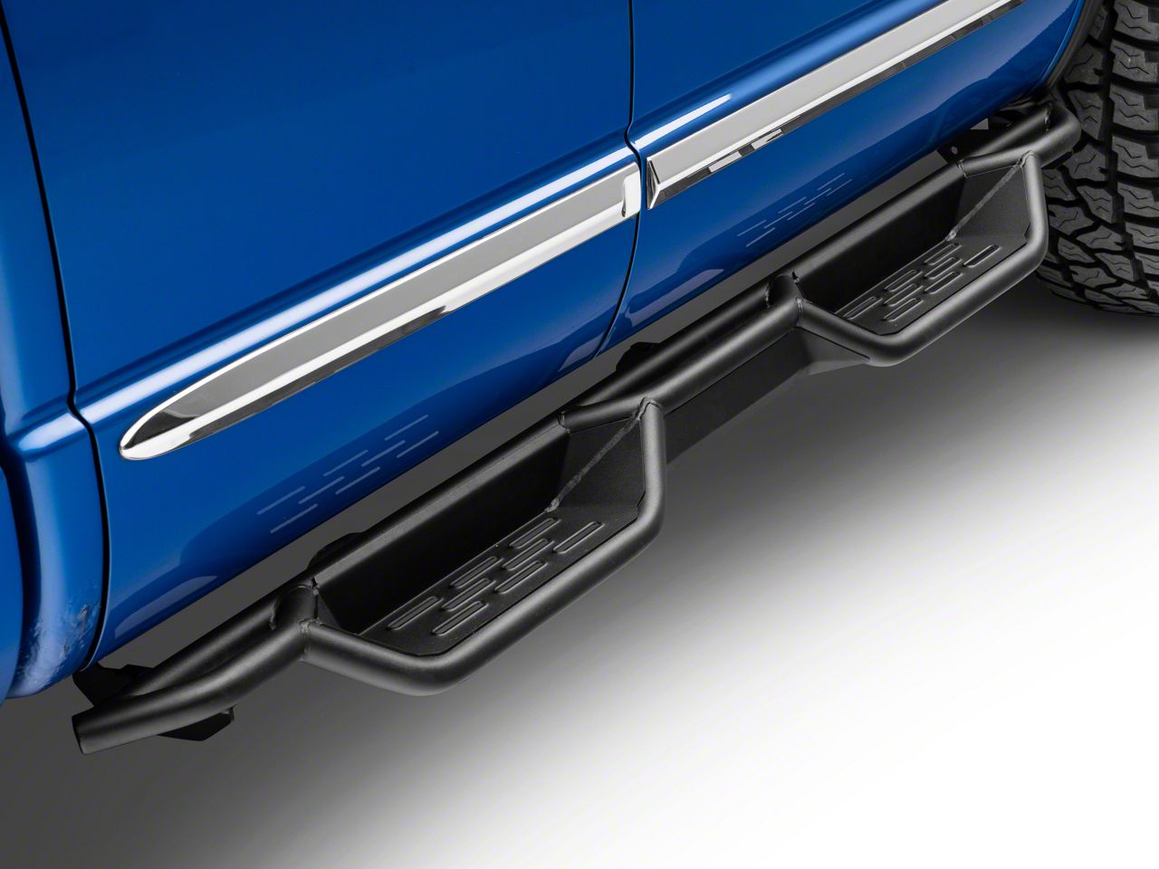 Function and Style. Get in and out of your Quad Cab RAM 1500 with ease by installing a set of RedRock 4x4's HD Drop Side Step Bars. With an angular drop stepped design, these black textured Side Steps not only provide easy entry into your lifted RAM, but they also give your RAM a rugged off-road appearance. As an added bonus, these HD Drop Side Step Bars provide additional protection from both road and trail hazards.