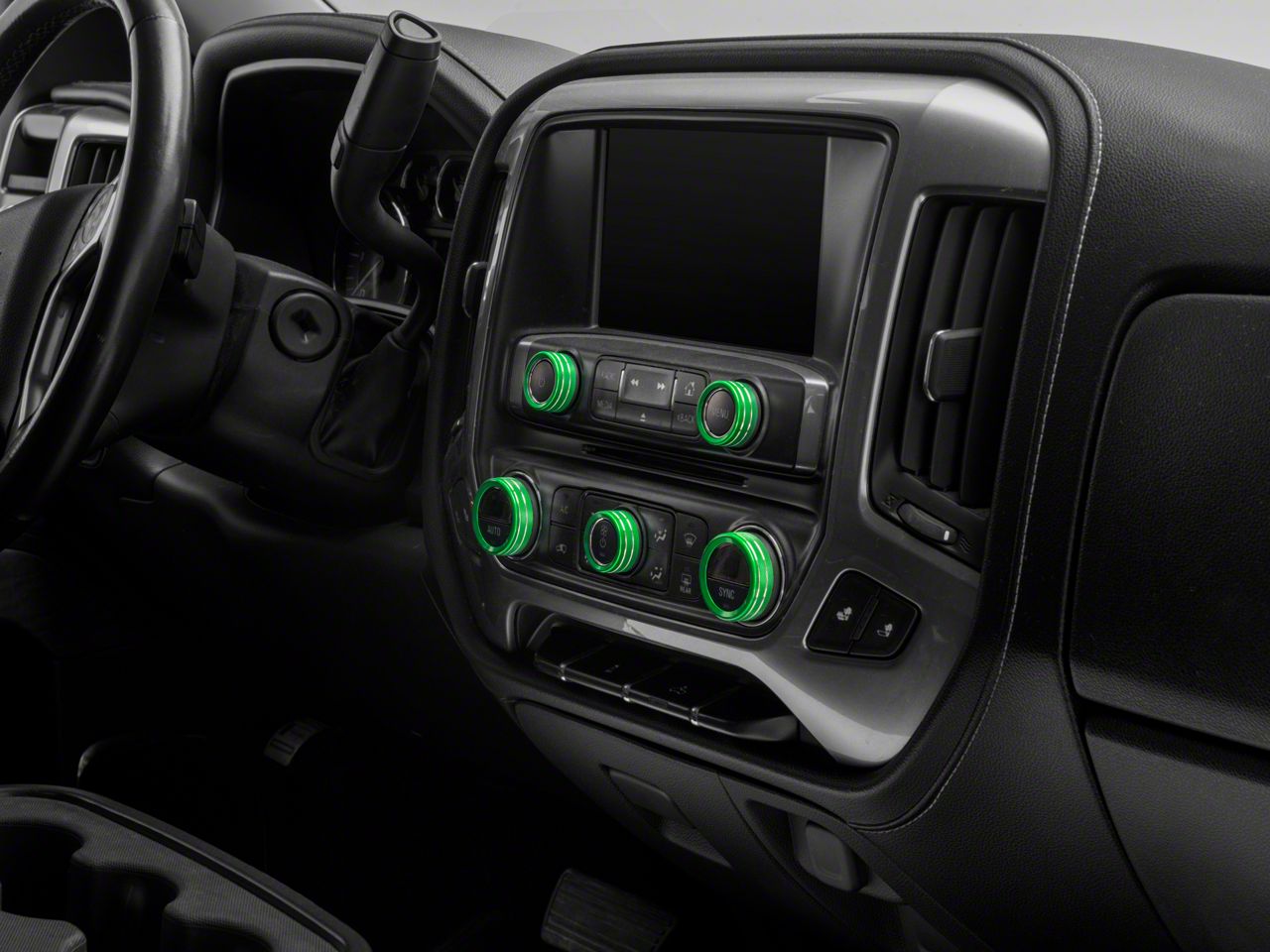 Custom Interior Styling. Add impressive custom styling to your Silverado's interior with a Green Anodized Billet Aluminum Interior Knob Cover Kit. This 8-piece Trim Ring Bezel Kit is a simple and effective way to upgrade the look and feel of your Silverado.