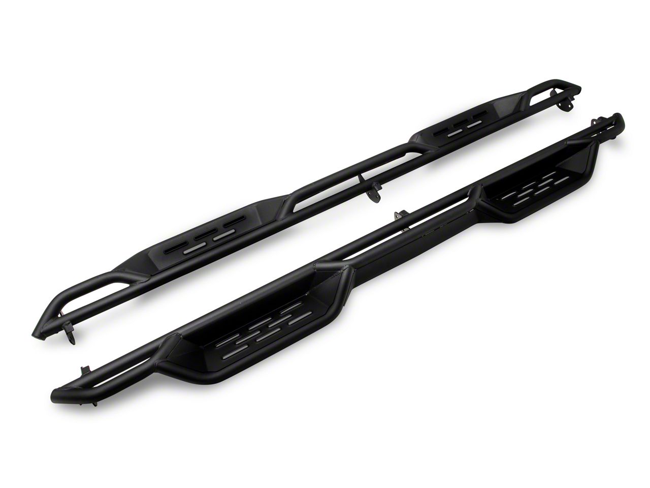 Heavy Duty Construction. RedRock 4x4 manufactures their HD Drop Side Step Bars to precise specifications from heavy duty, steel plating and mandrel bent tubing for superior strength and rigidity. RedRock then completes their Side Step Bars in a high-grade, textured black powder coated finish for long lasting durability.