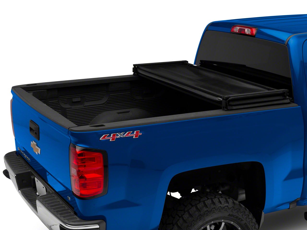 Protect Your Cargo in Style. Discretely hide cargo in the bed of your Chevrolet Silverado while enhancing its exterior styling with a RedRock 4x4 Soft Tri-Fold Tonneau Cover. This RedRock 4x4 Bed Cover features a convenient Tri-Fold design that can be folded up to access your bed, or when hauling larger items. As an added bonus, you may even see up to a 10% increase in fuel mileage because of its aerodynamic design.