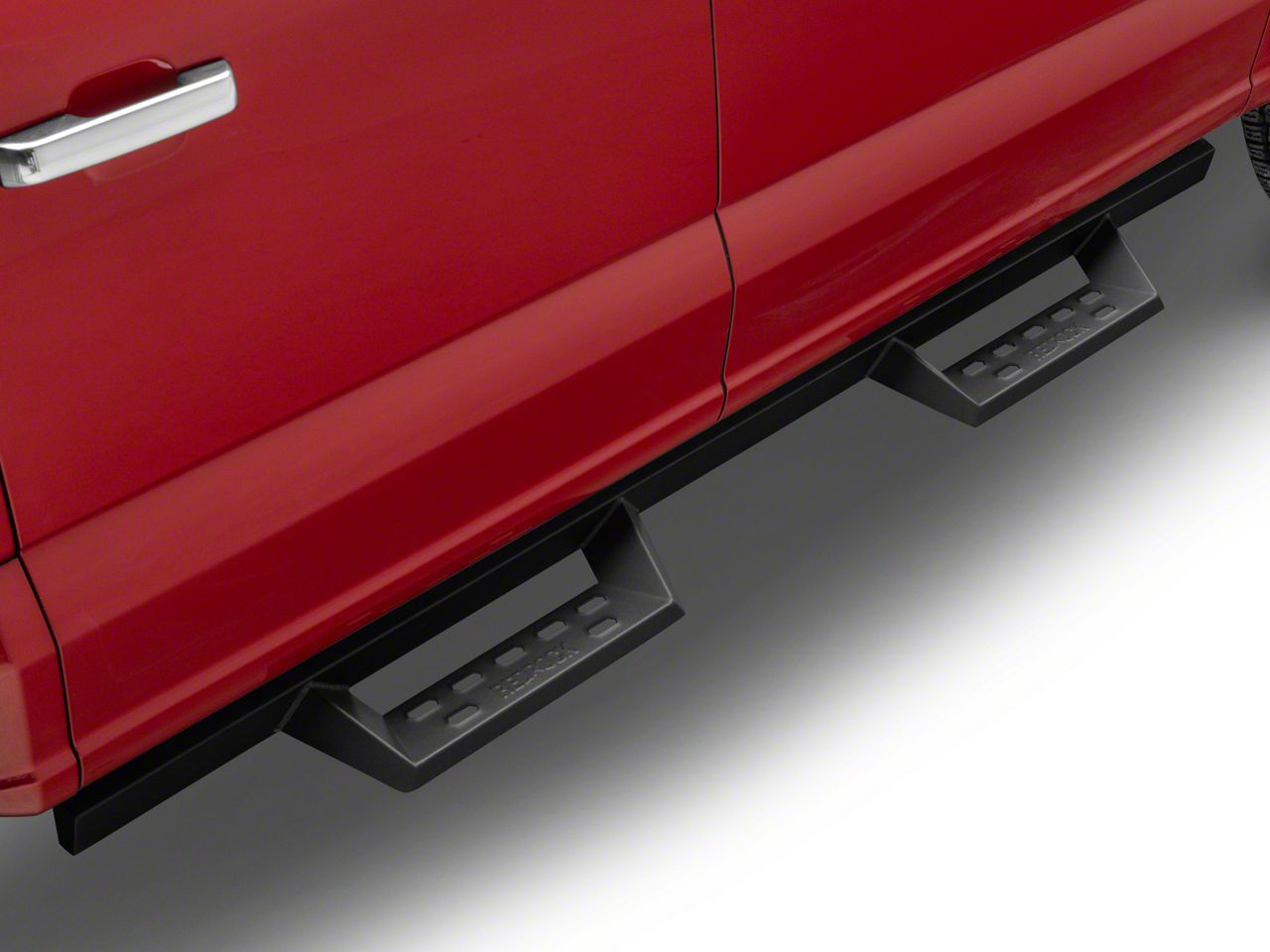 Style and Function. Upgrading to a set of RedRock's 4-Inch Drop TC1 Running Boards will make getting in and out of your 2015-2026 Ford F-150 SuperCrew a much easier task. With an angular drop stepped design, these Running Boards not only provide easy entry, but they also give your truck a rugged off-road appearance. As an added bonus, these Drop Side Running Boards can provide additional protection from both road and trail hazards.