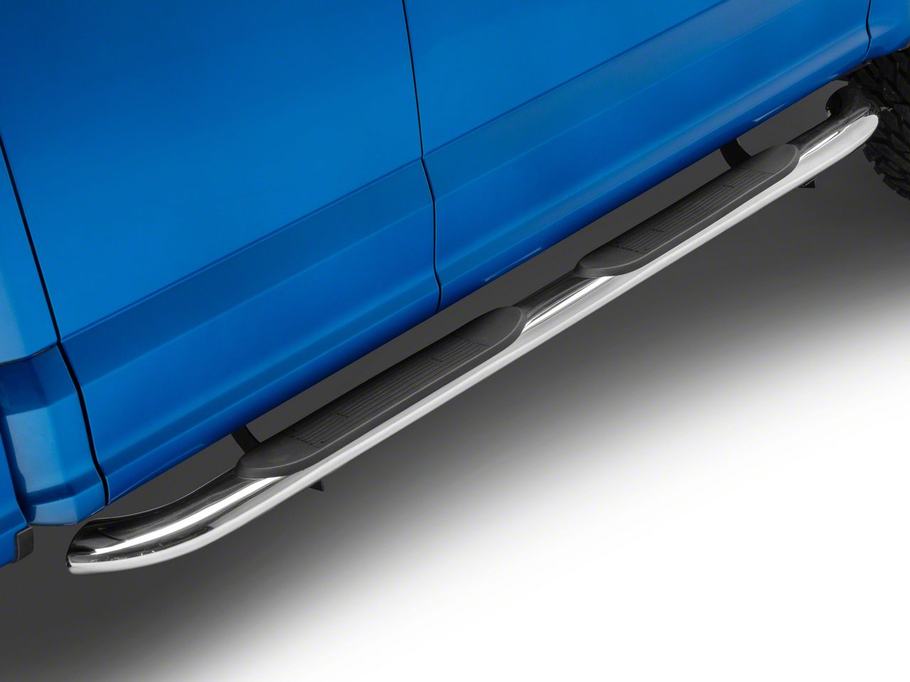 Application. These RedRock 4-Inch Oval Bent End Side Step Bars; Stainless Steel are designed to fit 2015-2026 Ford F-150 SuperCab models. Driver and passenger side are included.