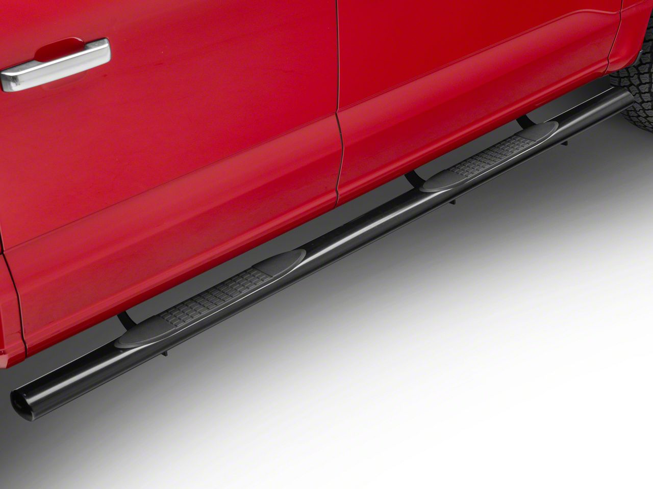 Style and Function. A set of black RedRock 4-Inch Oval Straight End Side Step Bars will make the strenuous task of getting in and out of your 2015-2026 Ford F-150 SuperCrew much easier. These RedRock Side Steps will provide you with a convenient step for easy entry, while giving your truck a rugged off-road appearance. In addition, these Side Steps also double as side armor to provide additional protection from both road and trail hazards, as well as dreaded parking lot door dings.