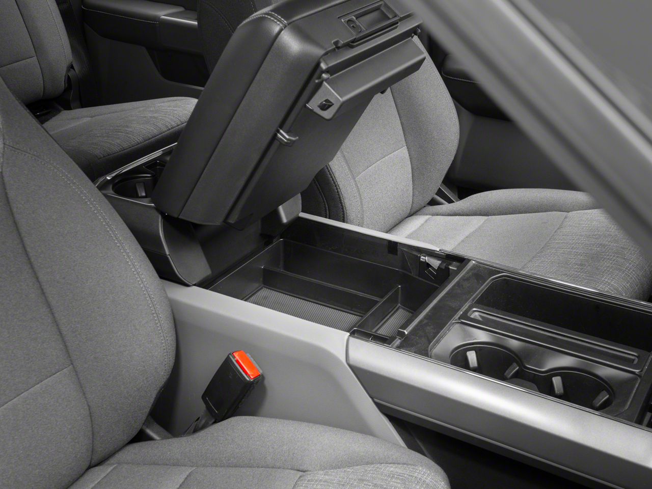 Organized Storage. RedRock's Center Console Storage Organizer Tray creates more usable storage space in your F-150's center console for small items. The Organizer Tray features a useful, 6-compartment design to separate items, such as your sunglasses, smartphone, loose change and more.