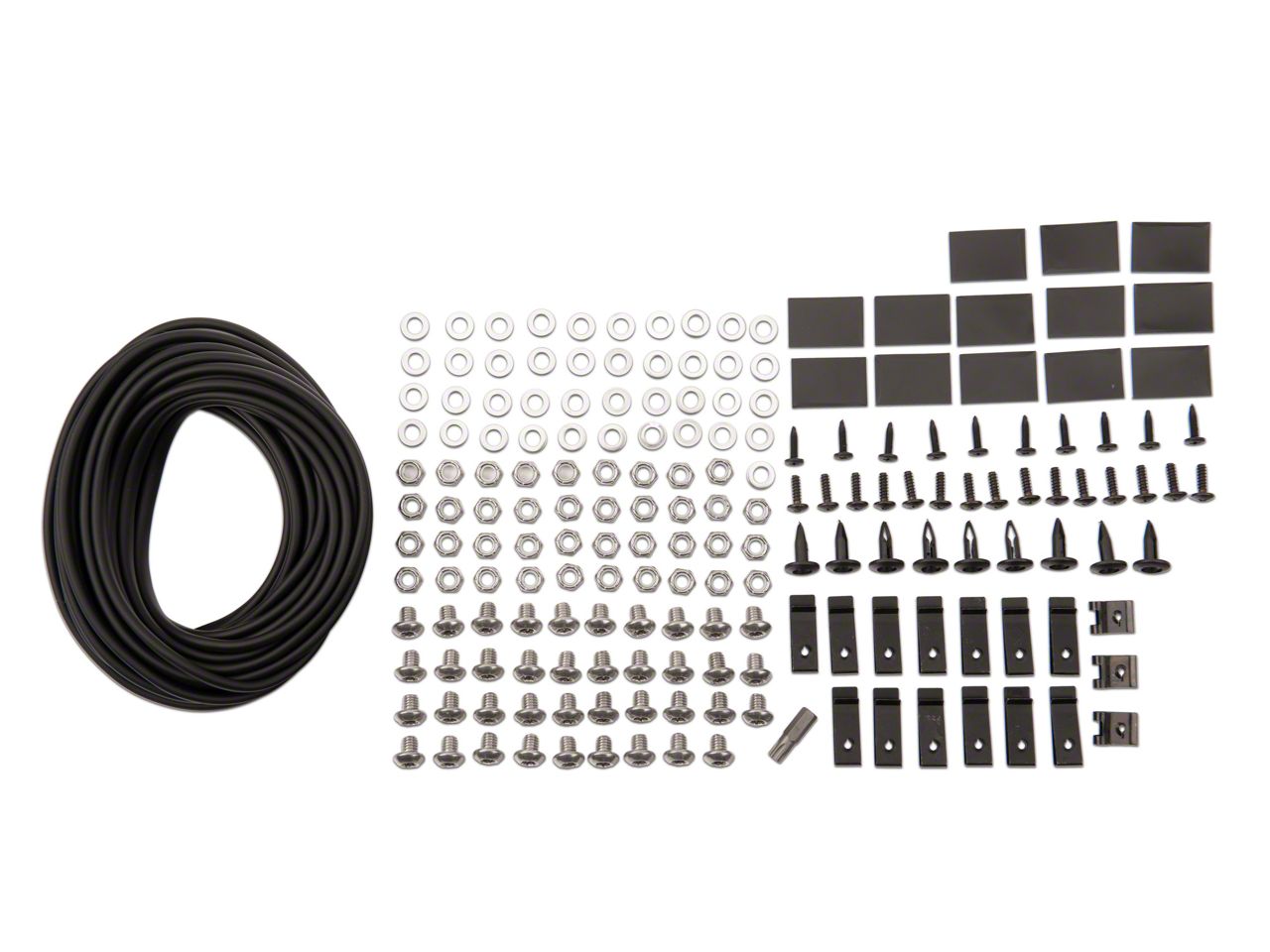 • Hardware Kit(Ss Torx Screw, Ss Washer, Nylock Nut,T-45 Torx Bit, Edge Trim, Edge Trim Tool,Black Clip, U Clip, Black Tab, Nylon Retainer, Ss Truss Screw)