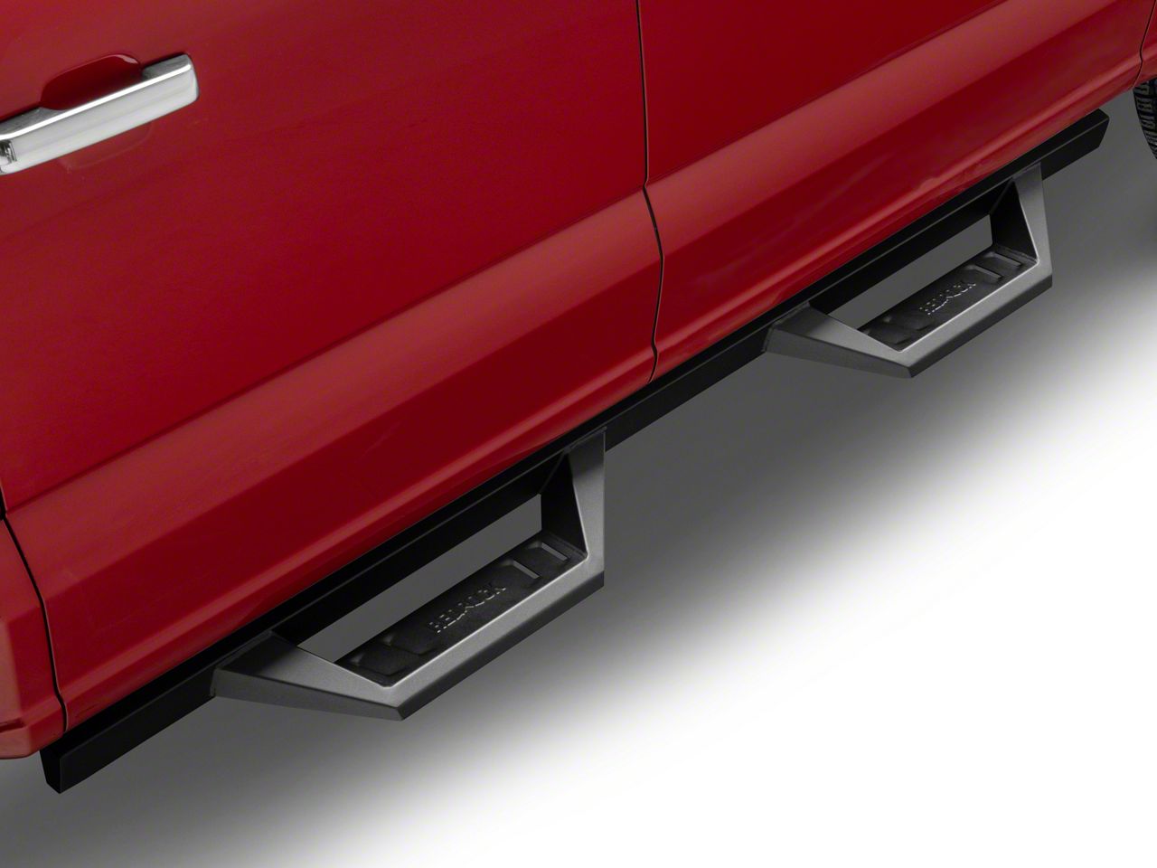 Style and Function. Upgrading to a set of RedRock's TC2 Drop Step Running Boards will make getting in and out of your 2015-2026 F-150 SuperCrew a much easier task. With an angular drop stepped design, these Running Boards not only provide easy entry, but they also give your truck a rugged off-road appearance. As an added bonus, these Drop Side Running Boards can provide additional protection from both road and trail hazards.