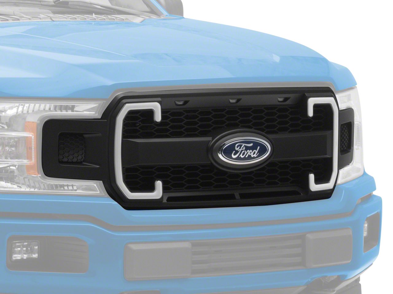LED Accent Lighting. This Grille also includes three high mount amber LEDs and two unique C shaped LED accent lights. The C shaped lights will act as Daytime Running Lights (DRL) and turn signal lights. The Grille includes a wiring harness that simply splices into your F-150's existing factory headlight harness. The LEDs will then automatically activate in conjunction with your running lights. These eye-catching LEDs not only look great, but will also make your F-150 more visible to other drivers at night and in poor weather conditions.