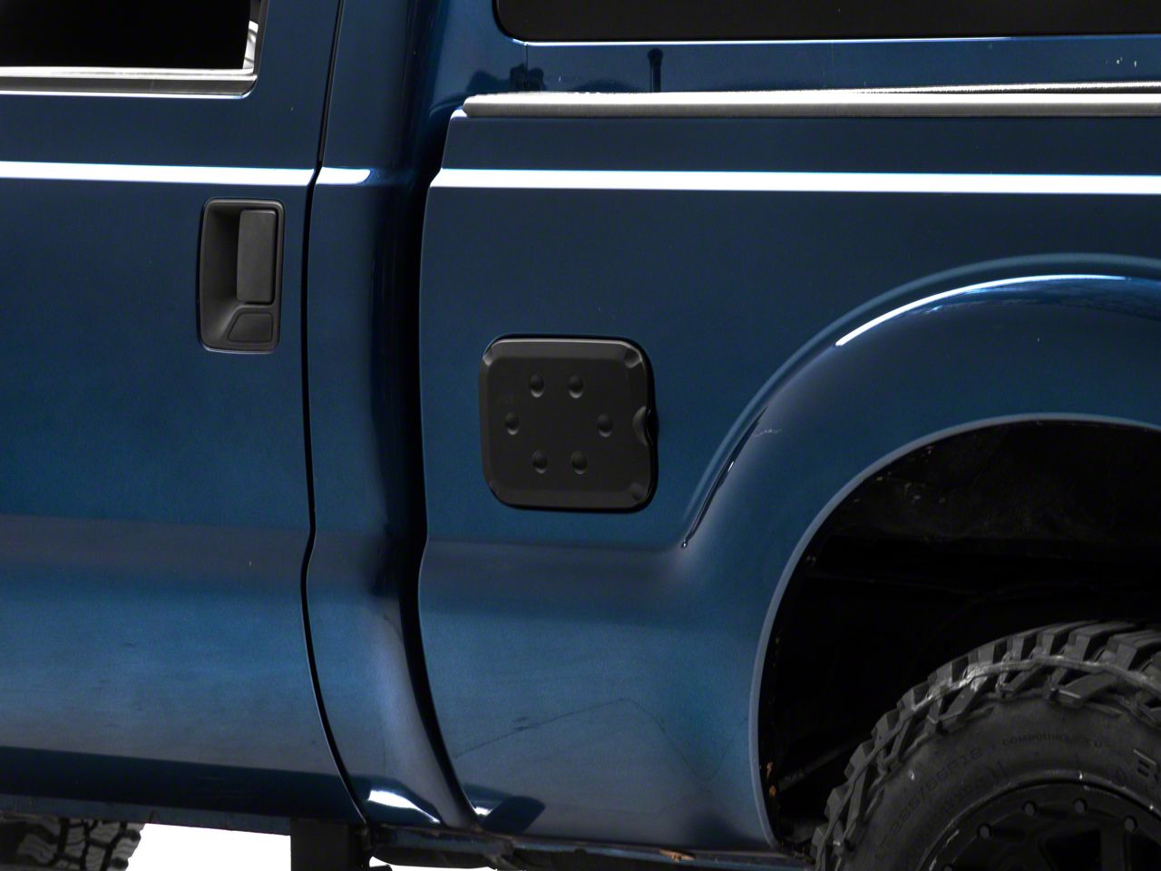 Aggressive Styling. A simple and effective way to add some aggressive styling to the exterior of your 2011-2016 Ford F-250 Super Duty is with a RedRock Matte Black Fuel Door Cover. This great looking, Matte Black Fuel Door Cover is an inexpensive way to upgrade the appearance of your exterior and it perfectly matches RedRock's complete line of other matte black styling parts.
