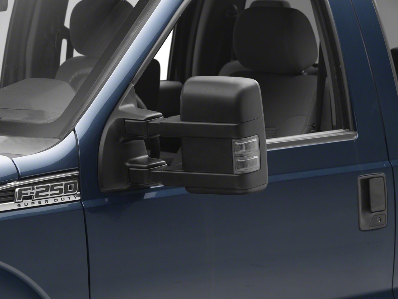 Towing Mirror. RedRock's Driver Side Powered Heated Towing Mirror with Amber LED Turn Signal is a great way to increase your rear visibility. This Mirror is designed to replace the power-operated, heated, manual folding/telescoping mirror found on 2011-2016 Ford F-250 models equipped with mirror mounted turn signals.