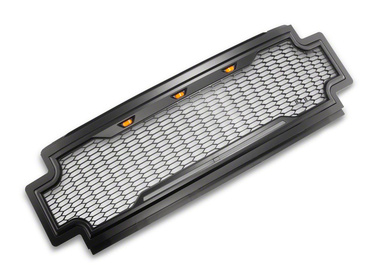 Application. This RedRock Baja Upper Replacement Grille with LED Lighting; Matte Black is designed to fit 2017-2019 Ford F-350 Super Duty models. This is a replacement grille not an overlay.
