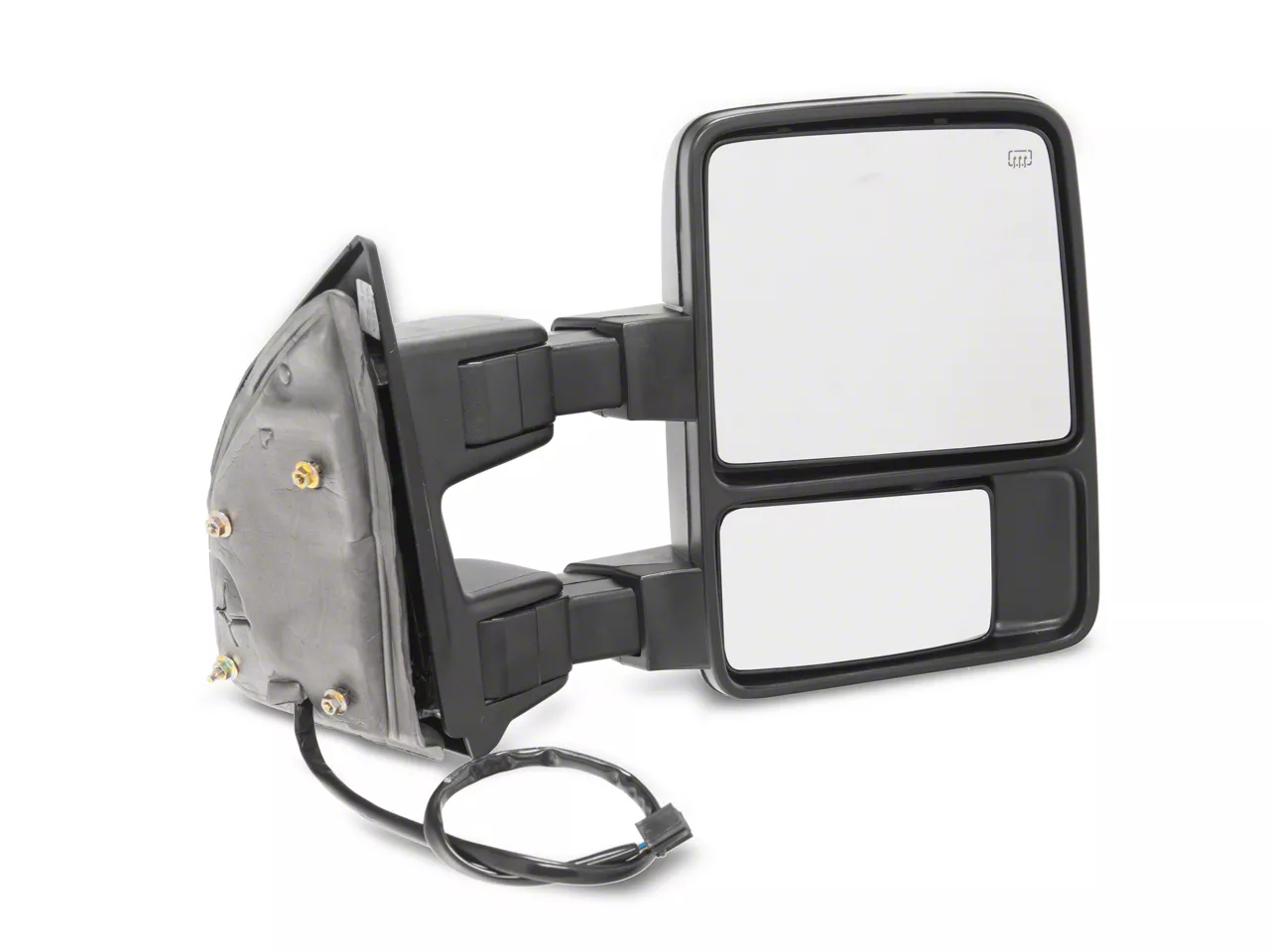 Towing Mirror. RedRock's Passenger Side Powered Heated Towing Mirror with Amber LED Turn Signal is a great way to increase your rear visibility. This Mirror is designed to replace the power-operated, heated, manual folding/telescoping mirror found on 2011-2016 Ford F-350 models equipped with mirror mounted turn signals.