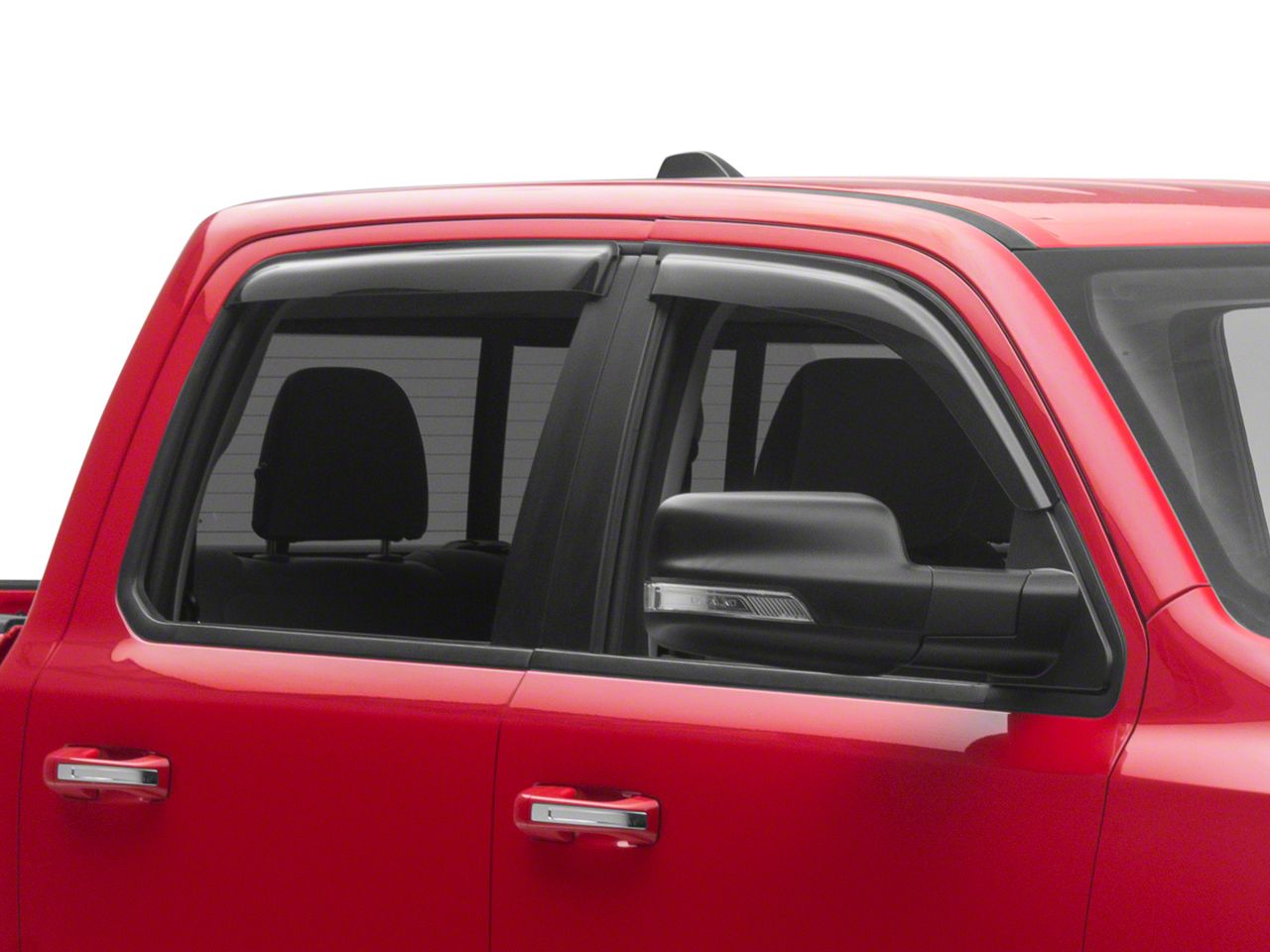 Application. These RedRock Out-Channel Window Deflectors are designed to fit 2019-2026 RAM 1500 Crew Cab models. Sold as a set of four deflectors.