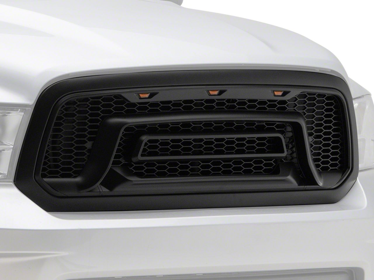Powerful Rebel Styling. Add the powerful styling of the Rebel to the front end of your 2013-2018 RAM with a RedRock Rebel Style Upper Replacement Grille. Featuring a unique mesh style pattern, this Rebel inspired Grille includes three integrated LED accent lights across the top for a rugged appearance. Designed to be installed in place of your factory grille, this RedRock Grille will certainly transform the appearance of your RAM.