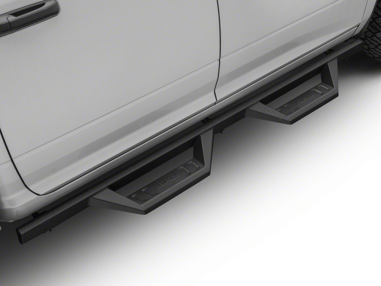Style and Function. Upgrading to a set of RedRock's TC2 Drop Step Running Boards will make getting in and out of your 2009-2018 RAM 1500 Crew Cab a much easier task. With an angular drop stepped design, these Running Boards not only provide easy entry, but they also give your truck a rugged off-road appearance. As an added bonus, these Drop Side Running Boards can provide additional protection from both road and trail hazards.