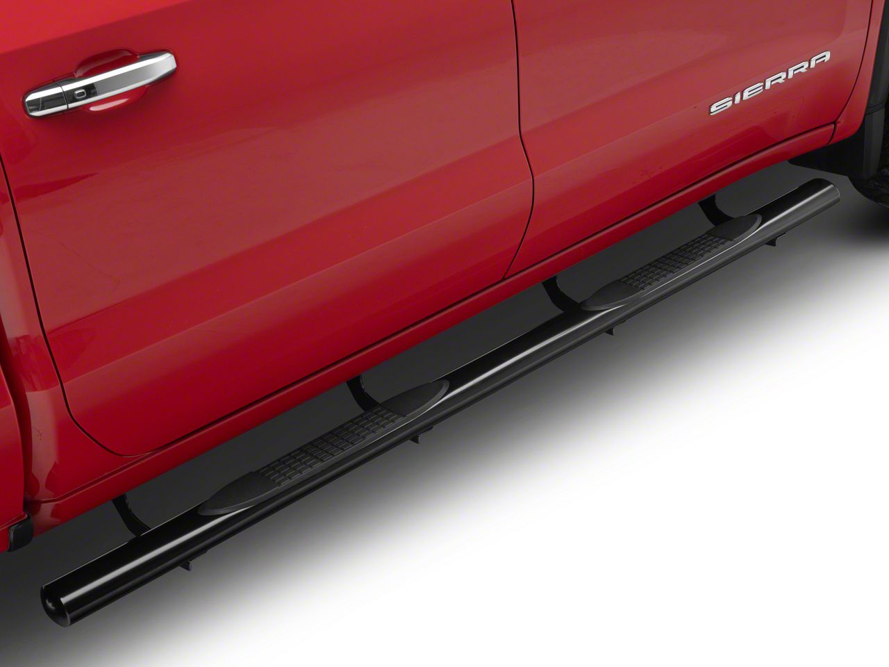 Style and Function. A pair of RedRock 4-Inch Oval Straight Side Step Bars will make the strenuous task of getting in and out of your 2019-2026 GMC Sierra 1500 Crew Cab much easier. These Side Steps will provide you with a convenient step for easy entry, while giving your truck a rugged off-road appearance. In addition, these Side Steps also double as side armor to provide additional protection from both road and trail hazards, as well as dreaded parking lot door dings.