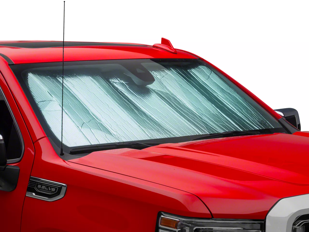 Stay Cool. Keep your GMC Sierra's interior cool on sweltering, hot summer days while also protecting it from the sun's harmful ultra violet rays with a RedRock Windshield Sunshade.