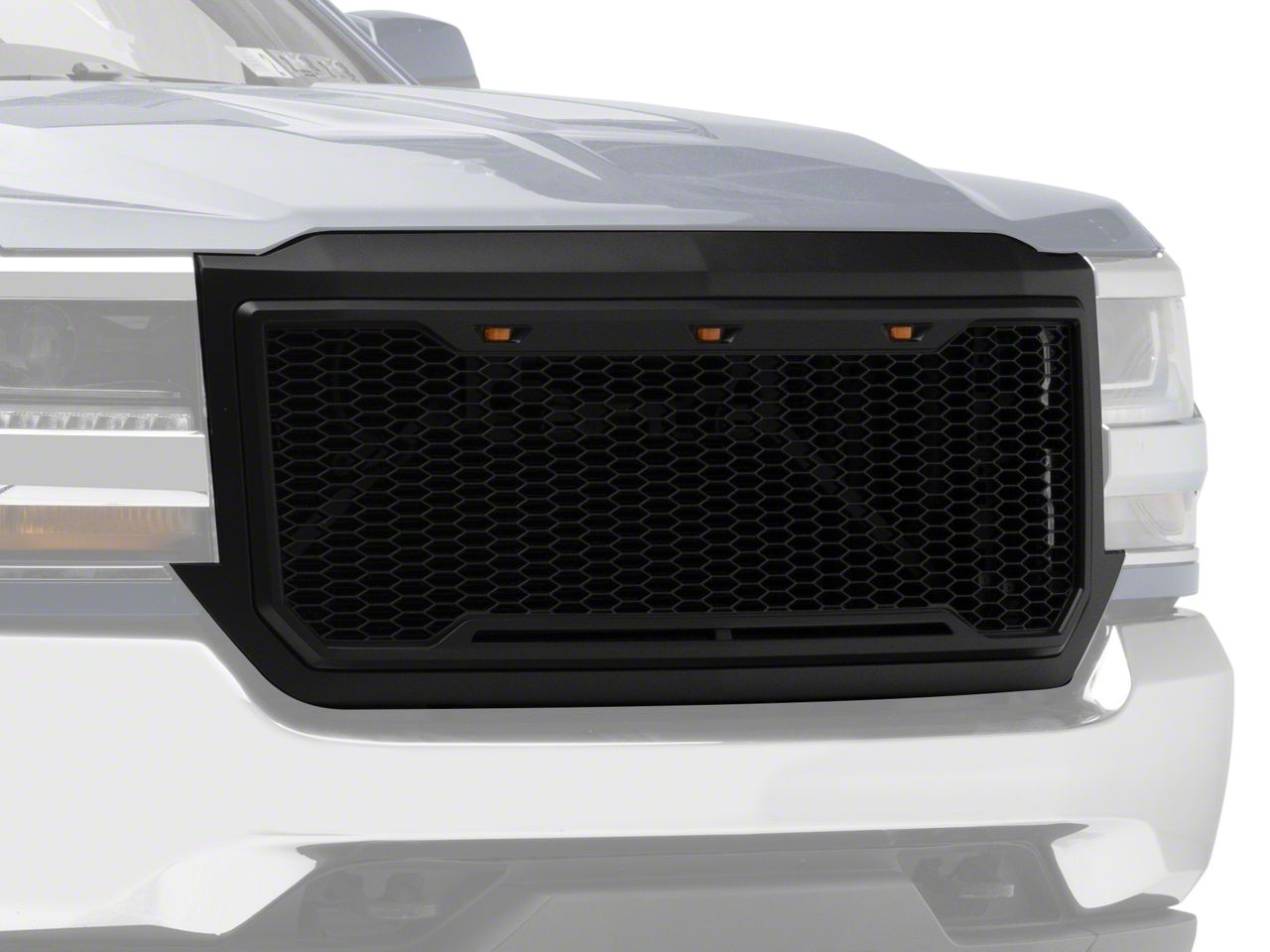 Forceful Baja Styling. Add forceful Baja styling to the front end of your 2016-2018 Chevrolet Silverado 1500 with a RedRock Baja Upper Replacement Grille. Featuring a unique honeycomb style pattern, this Baja inspired Grille includes three integrated LED accent lights across the top for a rugged appearance. Designed to be installed in place of your factory grille, this RedRock Grille will transform the appearance of your Silverado from a mild mannered daily driver into a mean Baja machine.