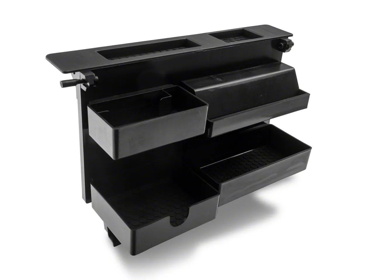 OEM Appearance. RedRock manufactures its Center Console Storage Organizer from an injection-molded ABS material for excellent durability. This Storage Organizer features a lightly textured black finish for an OEM appearance that compliments your factory interior nicely.