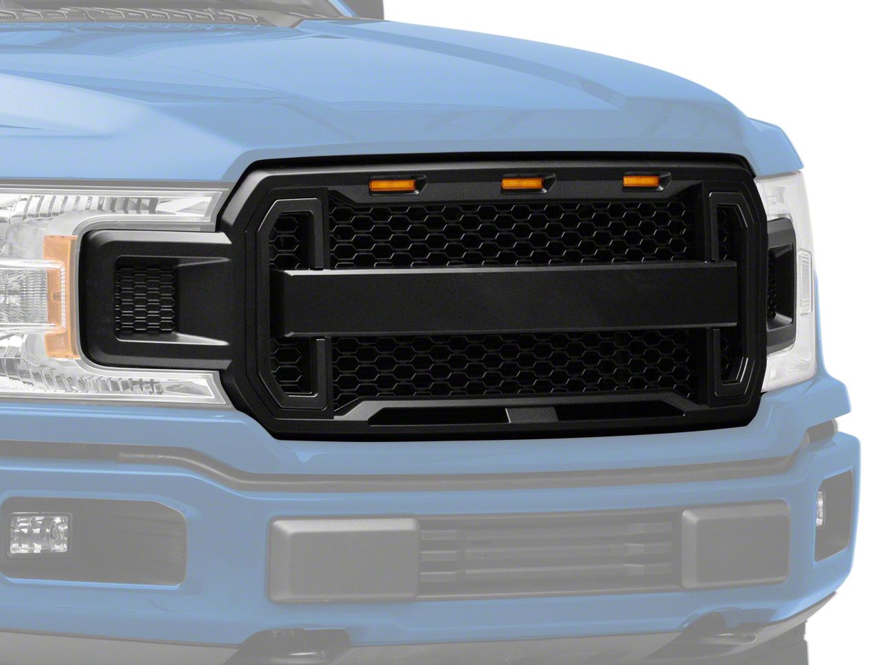 Forceful Baja Styling. A RedRock 4x4 Upper Replacement Grille will add forceful Baja styling to the front end of your 2018-2020 F-150. Featuring a unique honeycomb style pattern, this Baja inspired Grille includes three integrated LED accent lights across the top for a rugged appearance. Designed to be installed in place of your factory grille, this RedRock 4x4 Grille will transform the appearance of your F-150 from a mild mannered daily driver into a mean Baja machine.