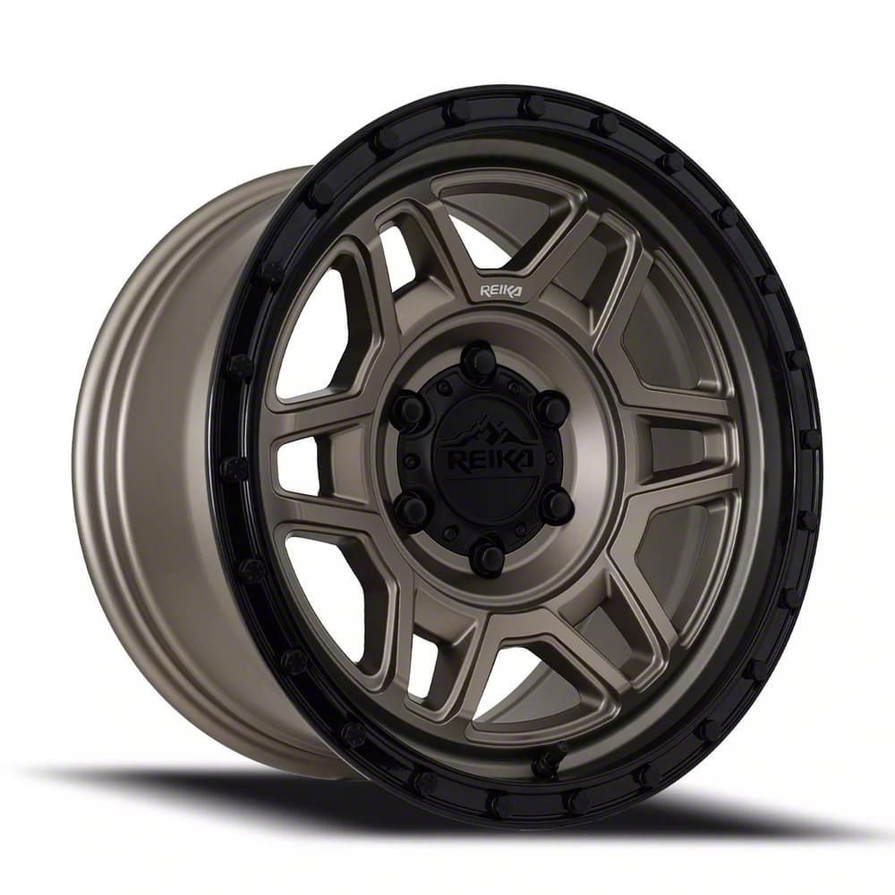 The 17x8.5 Reika R40 Trooper Bronze with Black Ring 6-Lug Wheel; 17x8.5; 0mm Offset is completed in a high-quality bronze finish with black ring, which is sure to turn heads. There is a durable clear coat for extra protection and enhanced appearance that can withstand the rigors of the road.