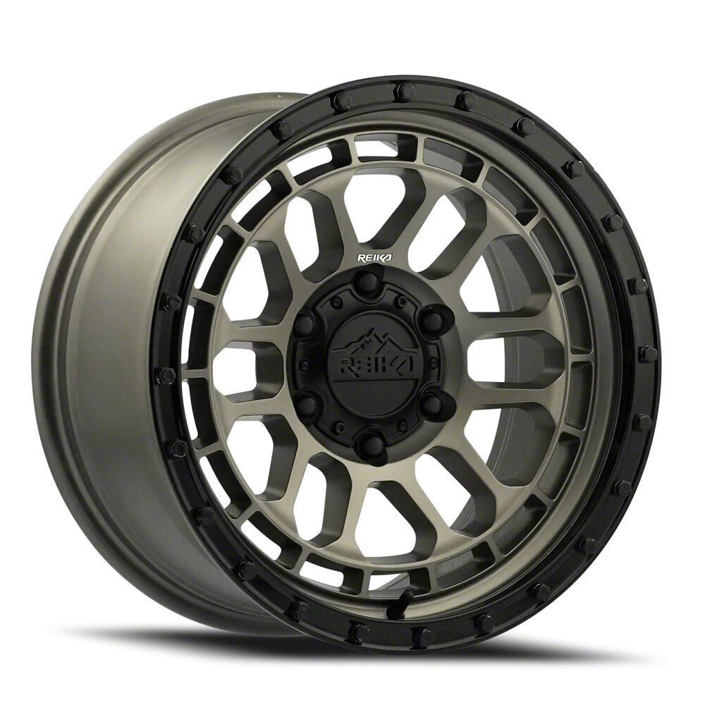 The 17x8.5 Reika R35 Rambler Bronze with Black Ring 6-Lug Wheel; 17x8.5; 0mm Offset is completed in a high-quality bronze finish with a black ring, which is sure to turn heads. There is a durable clear coat for extra protection and enhanced appearance that can withstand the rigors of the road.