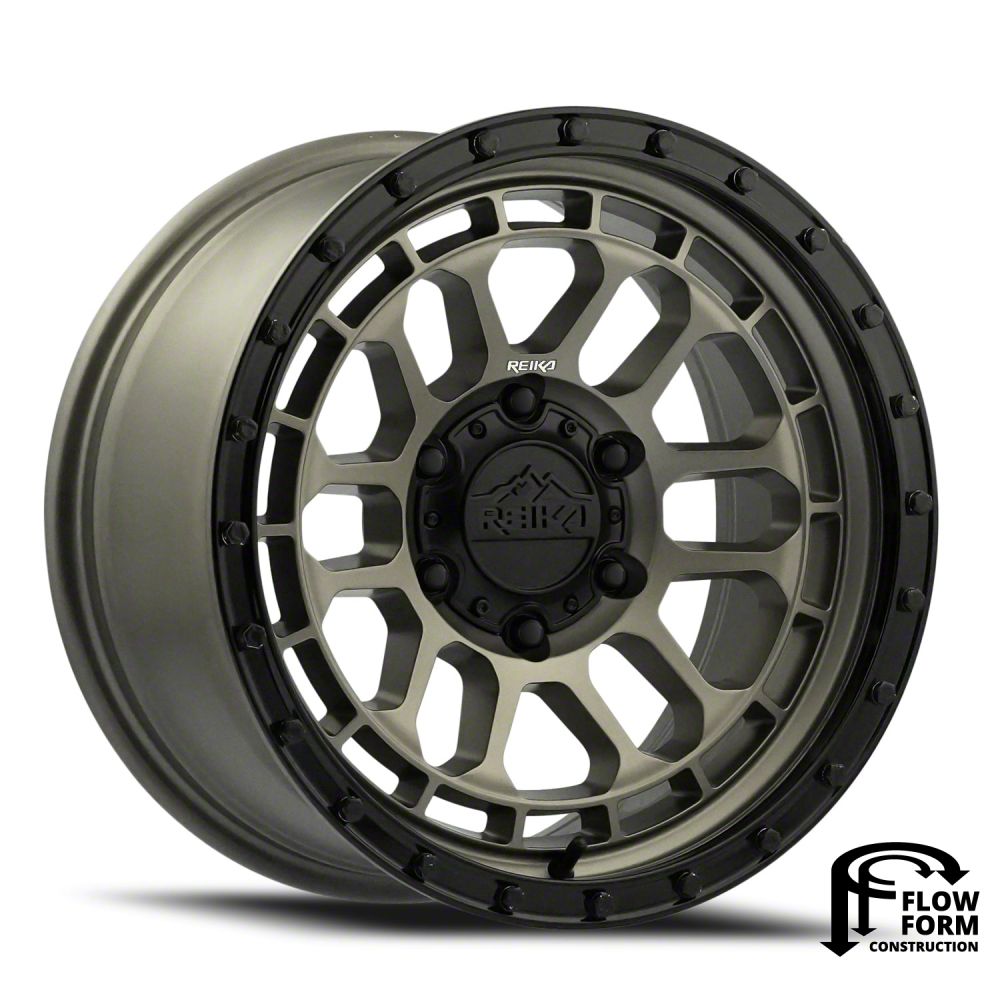Reika R35 Satin Bronze with Satin Black Ring 6-Lug Wheel; 17x8.5; 0mm Offset: Redefine your vehicle's style with the Reika R35 Satin Bronze with Satin Black Ring 6-Lug Wheel. This wheel's elegant design and striking finish embody a blend of sophistication and boldness, perfectly complementing a wide array of vehicle aesthetics. Crafted from high-quality materials, it's a testament to durability and style.