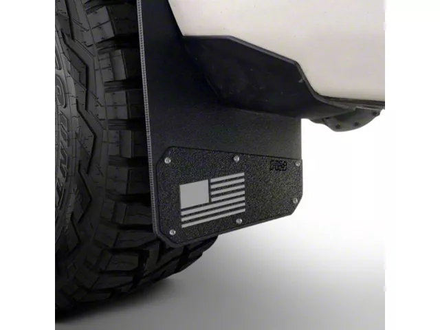 Description. Our RG Mud Flaps are constructed from a 3/8" thick, weather-tested blend of thermoplastic rubber & resin. They are manufactured to be stiff enough to retain their shape yet flex when they need too. Our Anti-Spray Technology on the inside of the flap is meant to push mud, snow, slush, water and debris away towards the ground protecting the body of your Truck/SUV and anything it might be towing. Stainless steel plates add strength and durability while maintaining the aggressive styling of your vehicle. Color backing is durable and is hot stamped into the mud flap material.